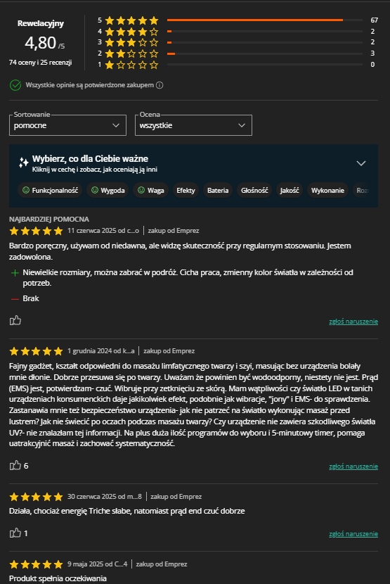 "Bardzo poręczny, używam od niedawna, ale widzę skuteczność przy regularnym stosowaniu. Jestem zadowolona."