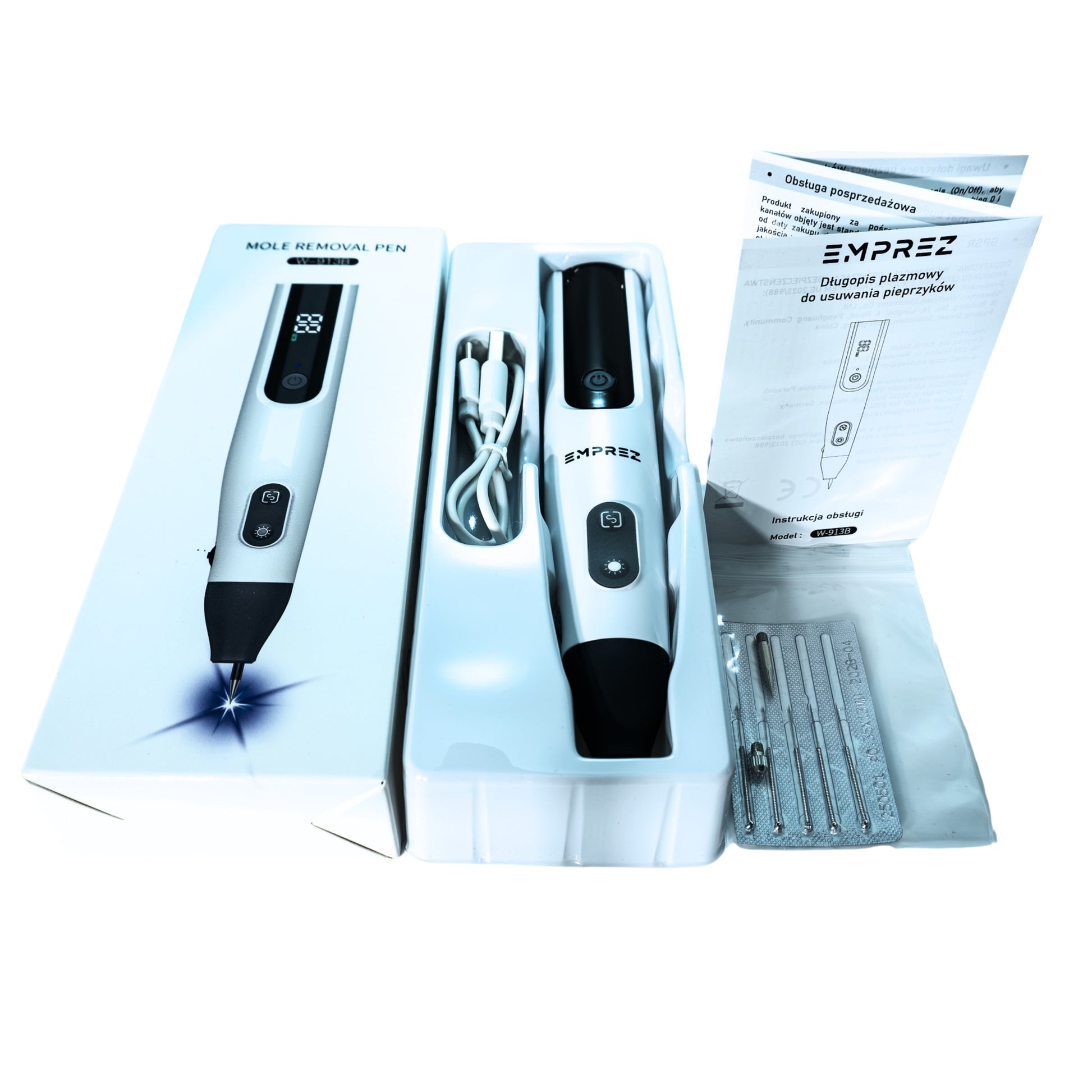 Emprez Plasma Pen Pro to precyzyjny długopis plazmowy do usuwania brodawek, pieprzyków (kosmetycznych), włókniaków i przebarwień. Działa punktowo – dzięki mikroplazmie usuwa niedoskonałości, nie uszkadzając zdrowej skóry dookoła.