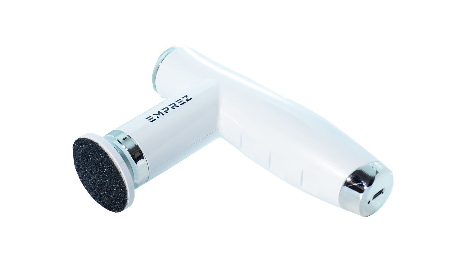 Obrotowa głowica 360° usuwa martwy naskórek równomiernie i delikatnie.